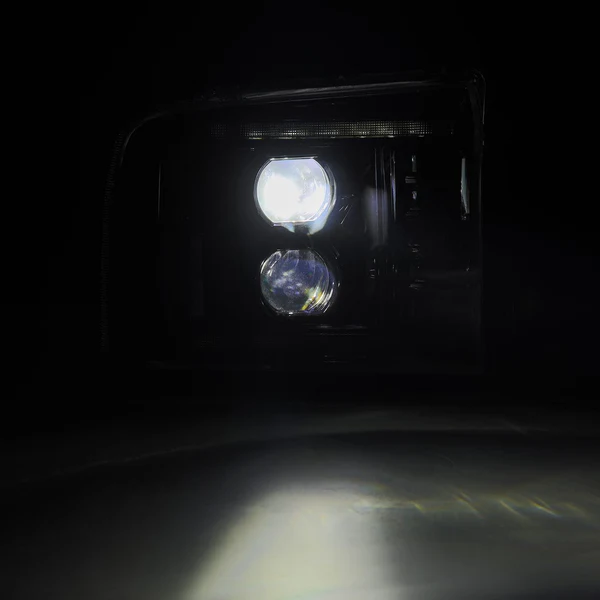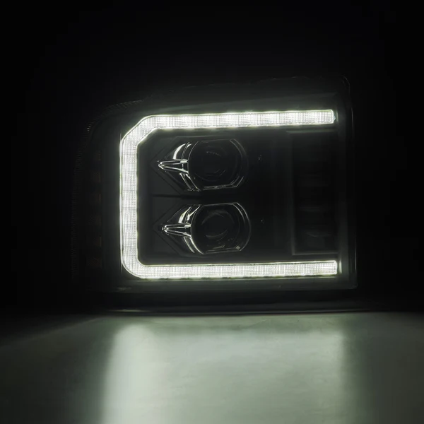 LUXX-Series Driver and Passenger Side Black Projector LED Headlights with Sequential DRL by AlphaRex®. 1 Pair. Black housing, clear lens. Bulb: LED low beam, LED high beam. Upgrade your vehicle with top-of-the-line headlights from AlphaRex and enjoy excellent light performance and improvement in appearance. Delivering bright illumination, they will effectively light your way during the night and enable safe driving, while giving your vehicle a dream exterior, rediscovering its beauty in a new way.