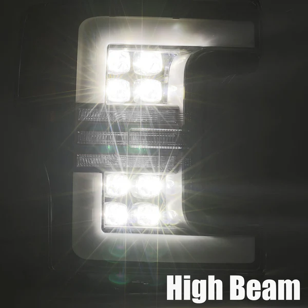 NOVA-Series Driver and Passenger Side Chrome DRL Bar Projector LED Headlights by AlphaRex®. 1 Pair. Chrome housing, clear lens. Bulb: LED low beam (included), LED high beam (included). Do you feel like it’s time to upgrade your headlight system? Feast your eyes on these extraordinary projector headlights with the LED bar surrounding the light as a DRL and claw signature sequential signal light. The LED bar also provides an activation light feature which is a running light when you unlock your vehicle. Sporting the state-of-the-art design and powerful LEDs delivering extremely high light output, these lights are second to none.