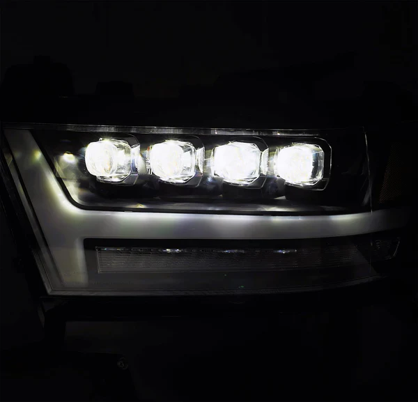 NOVA-Series Driver and Passenger Side Black/Chrome DRL Bar Projector LED Headlights with Sequential Turn Signal (880517) by AlphaRex®. 1 Pair. Black/chrome housing, clear lens. Bulb: LED low beam, LED high beam. Do you feel like it’s time to upgrade your headlight system? Feast your eyes on these extraordinary projector headlights with the LED bar surrounding the light as a DRL and claw signature sequential signal light. The LED bar also provides an activation light feature which is a running light when you unlock your vehicle. Sporting the state-of-the-art design and powerful LEDs delivering extremely high light output, these lights are second to none.