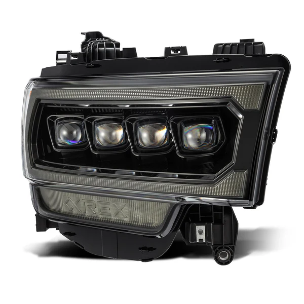 NOVA-Series Driver and Passenger Side Alpha-Black Sequential DRL Bar Projector LED Headlights (AHL-DR219-N-FLB) by AlphaRex®. 1 Pair. Alpha-Black housing, clear lens. Bulb: LED low beam, LED high beam. Upgrade your vehicle with top-of-the-line headlights from AlphaRex and enjoy excellent light performance and improvement in appearance. Delivering bright illumination, they will effectively light your way during the night and enable safe driving, while giving your vehicle a dream exterior, rediscovering its beauty in a new way.