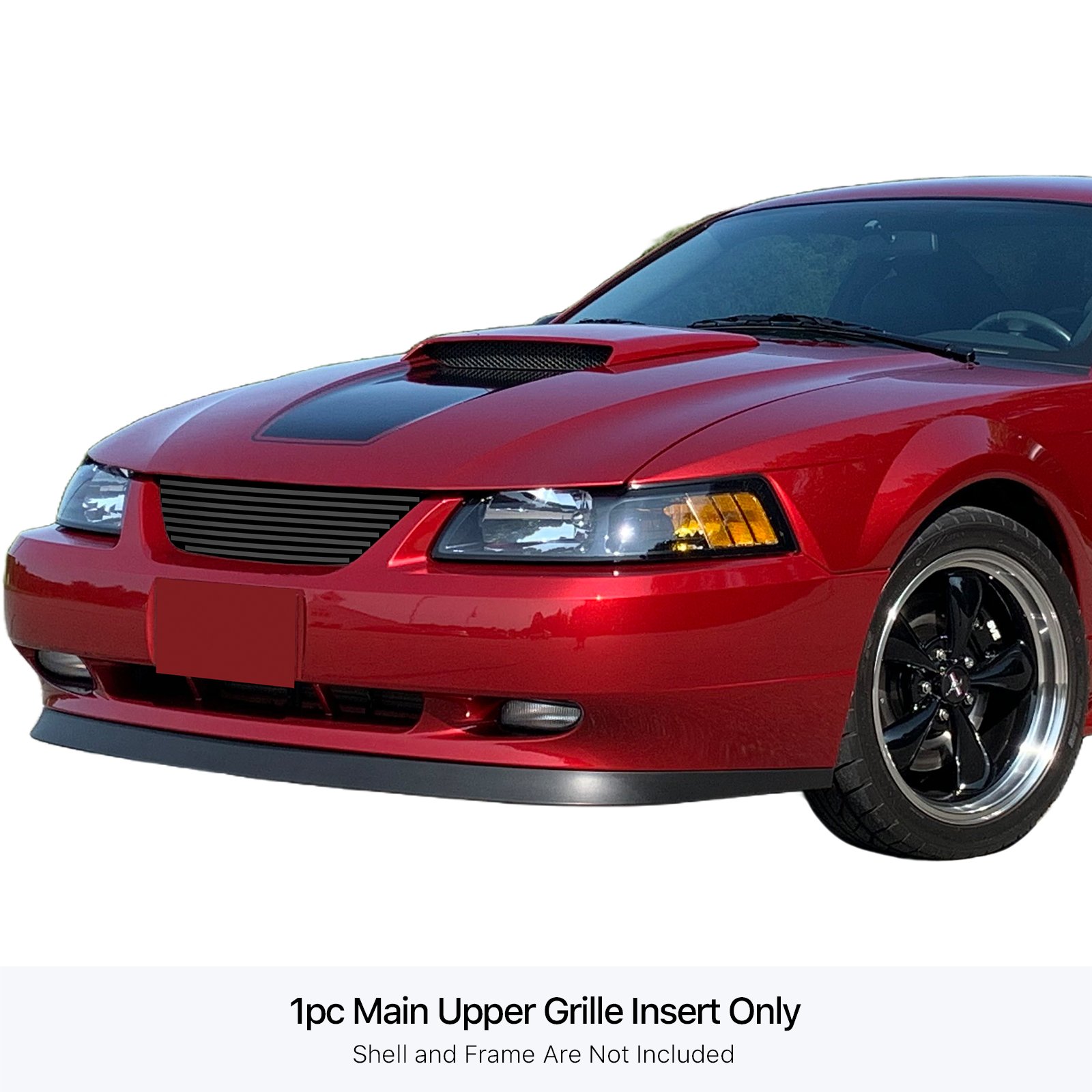 Fits 1999-2004 Ford Mustang Not for Cobra; Only for Models with OEM Honeycomb Grille Main Upper Black Stainless Steel Billet Grille