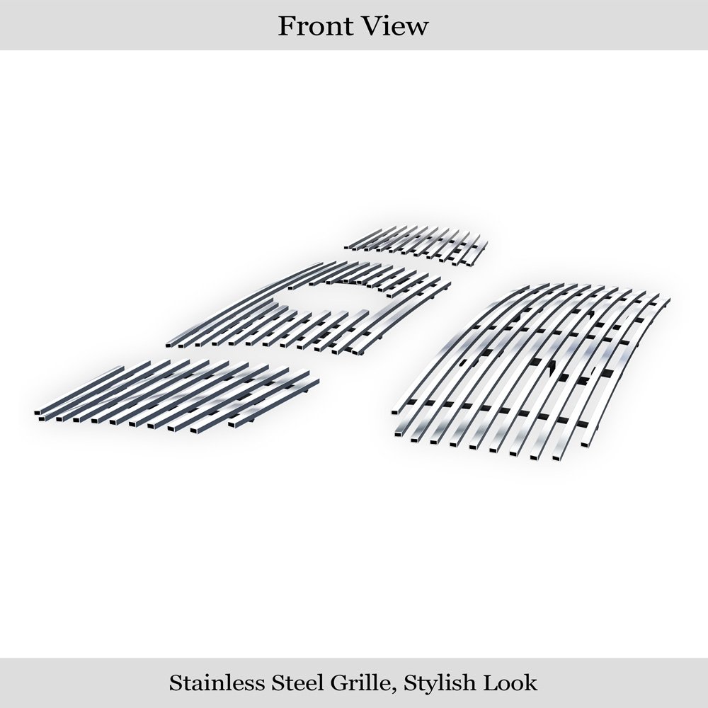 Polished 304 Stainless Steel 8×6 mm Horizontal Billet Main and Bumper Grille Kit with Logo Cutout (GR14FGI92S) by APG®, 4-Piece. Installation type: overlay (bolt-on). 4 Bars. Enhance exterior and add stylish accent to your vehicle with Billet Grille by APG. The Grille is made of stainless steel for high durability. The Billet Grille is designed application-specific to fit your vehicle perfectly.