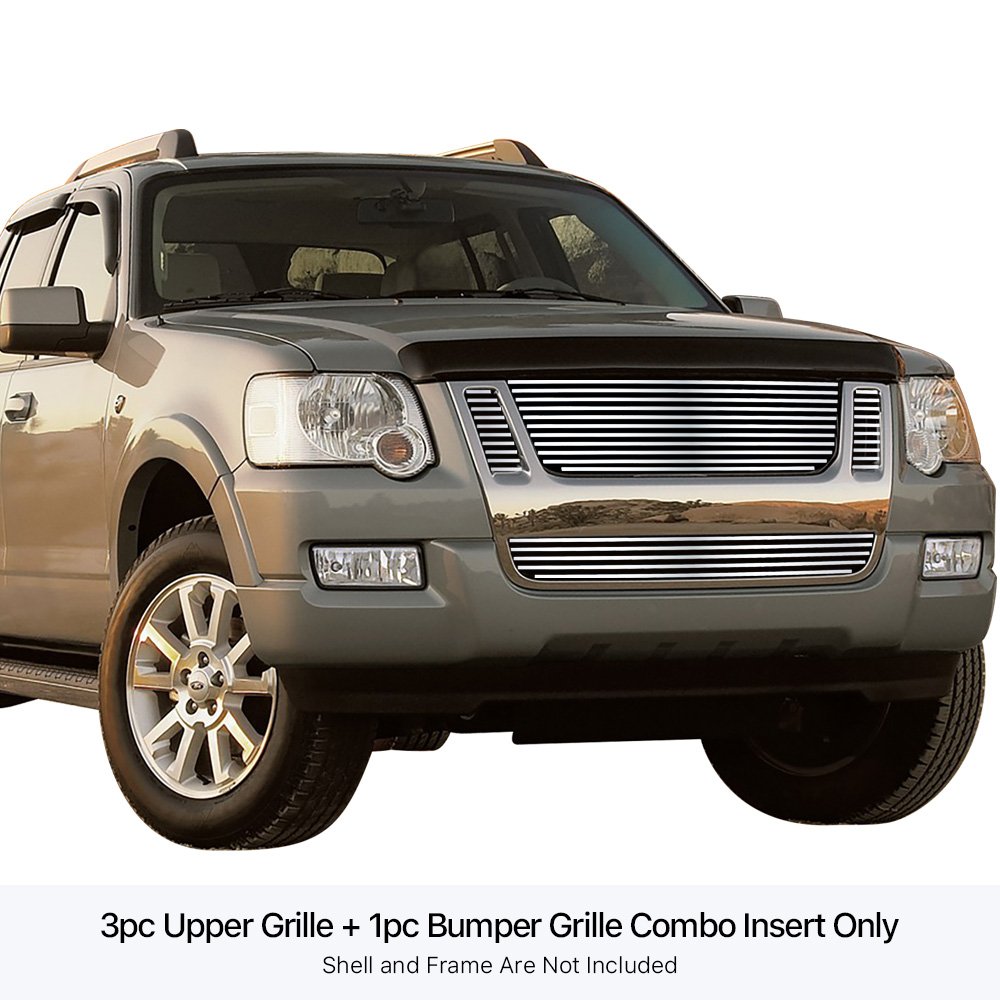 Fits 2007-2010 Ford Explorer Sport Trac Not For Adrenalin Main Upper + Lower Bumper Stainless Steel Billet Grille