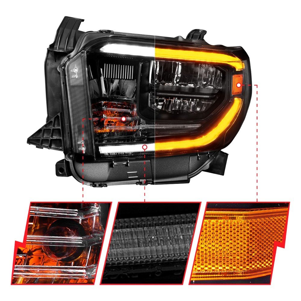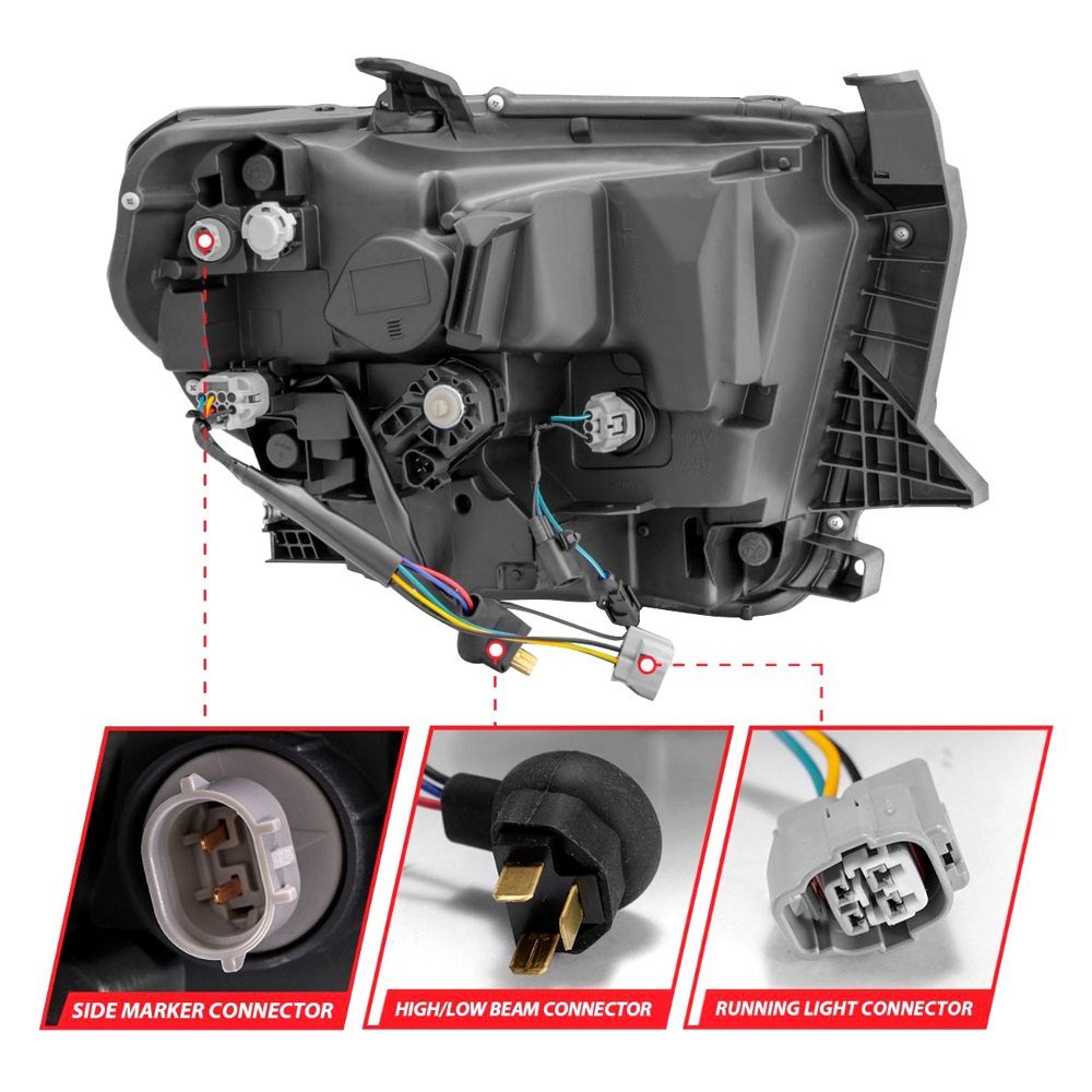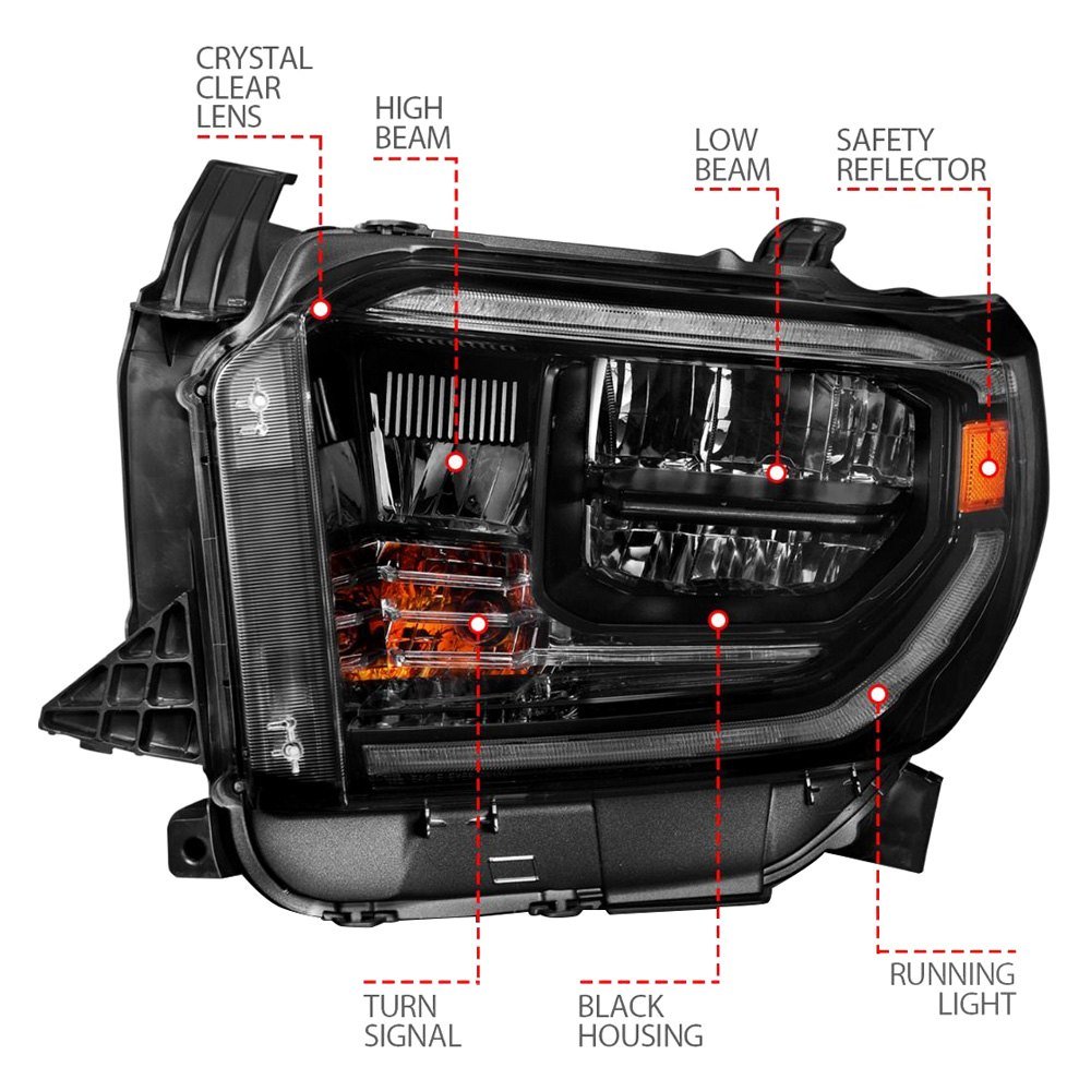 Plank Style Driver and Passenger Side Black LED Headlights with Switchback DRL by Anzo®. 1 Pair. Black housing, clear lens. Bulb: LED low beam (included), LED high beam (included). Do you have a hard time seeing while driving at night? Worried about hitting a deer or other nocturnal road hazards? If you answered yes, then you should get a set of Anzo headlights. These powerful head lamps are brighter than factory headlights and are designed using the latest computer assisted design technology. Anzo uses this CAD technology to not only ensure that you get the best functioning headlights, but that they also look great and fit perfectly.