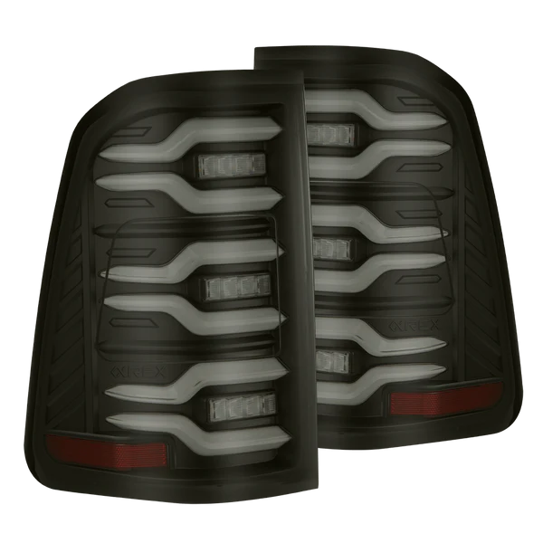 LUXX-Series Driver and Passenger Side Alpha-Black/Smoke Sequential Fiber Optic LED Tail Lights by AlphaRex®. 1 Pair. Black housing, smoke lens. In order to stay safe on the road, you need to be sure that your tail lights are in good working order and if you want more, you can opt for these high-performance lights by AlphaRex. They will awaken your vehicle with their magnificent look and elaborate design. Equipped with ultra bright bulbs, the lights deliver sparkling lighting and ensure reliable, consistent operation for the long haul.