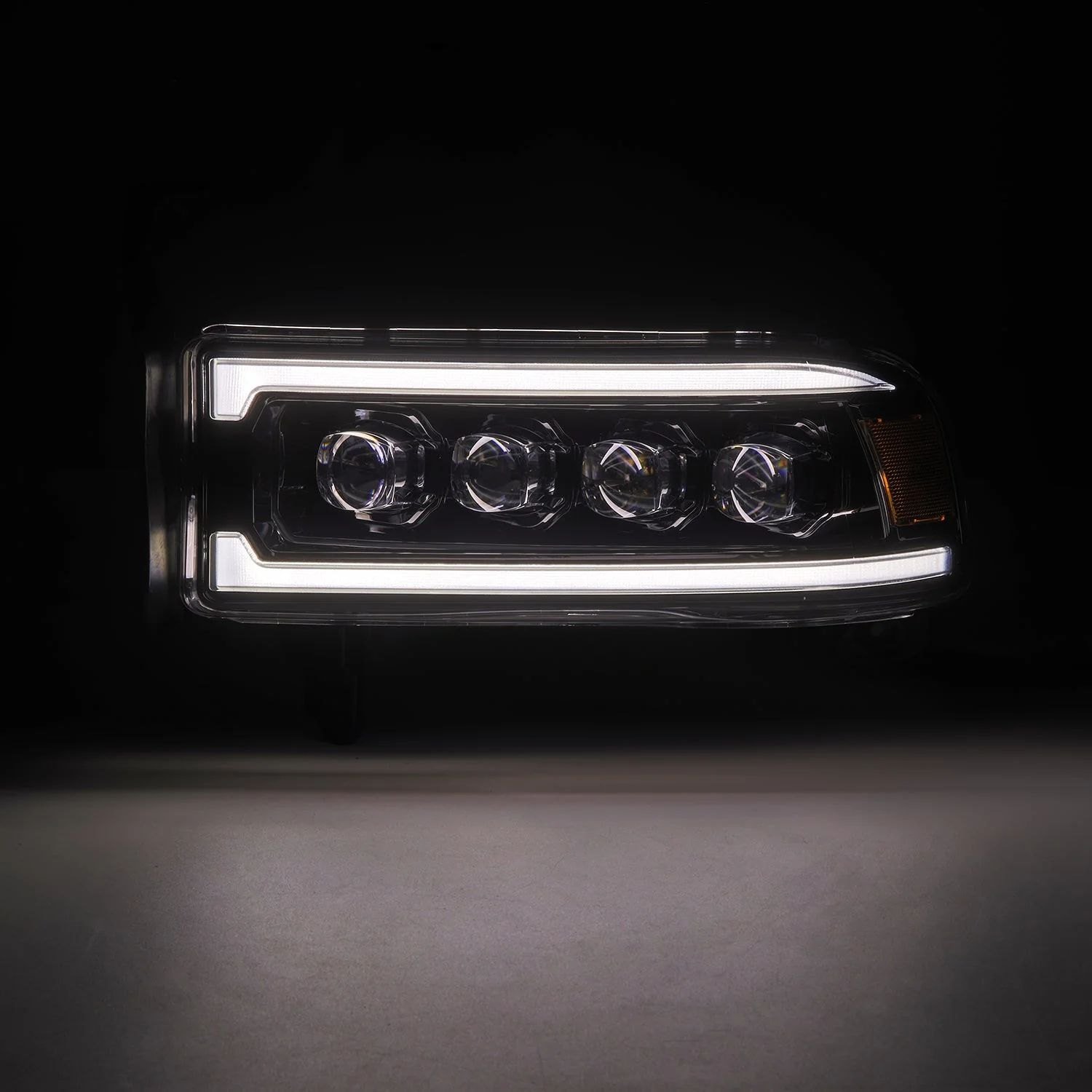 NOVA-Series Driver and Passenger Side Alpha-Black DRL Bar Projector LED Headlights by AlphaRex®. 1 Pair. Alpha-Black housing, clear lens. Bulb: LED low beam, LED high beam. Do you feel like it’s time to upgrade your headlight system? Feast your eyes on these extraordinary projector headlights with the LED bar surrounding the light as a DRL and claw signature sequential signal light. The LED bar also provides an activation light feature which is a running light when you unlock your vehicle. Sporting the state-of-the-art design and powerful LEDs delivering extremely high light output, these lights are second to none.