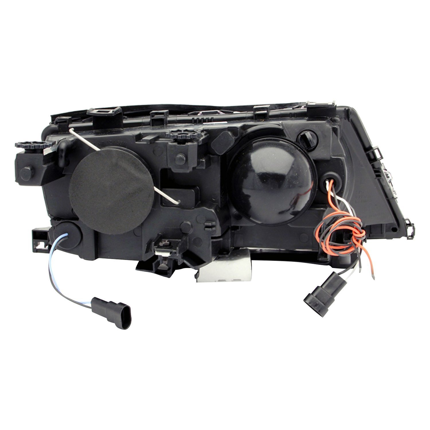 Driver and Passenger Side Black LED Halo Projector Headlights by Anzo®. 1 Pair. Black housing, clear lens. Bulb: H7 low beam (included), H7 high beam (included). Do you have a hard time seeing while driving at night? Worried about hitting a deer or other nocturnal road hazards? If you answered yes, then you should get a set of Anzo headlights. These powerful head lamps are brighter than factory headlights and are designed using the latest computer assisted design technology. Anzo uses this CAD technology to not only ensure that you get the best functioning headlights, but that they also look great and fit perfectly.