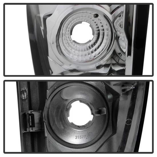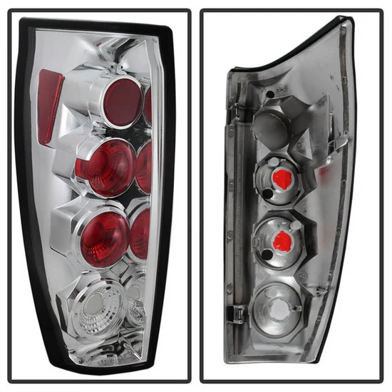 Driver and Passenger Side Chrome/Red Euro Tail Lights (ALT-YD-CAV04-C) by Spyder®. 1 Pair. Chrome housing, red/clear lens. Backed by a 1-year warranty. Replace your boring monochromatic tail lights with these bolt-on Euro tail lights, and give your vehicle an exclusive look like nothing else on the road. The interesting detail and unique light arrangement is clearly visible beyond the smooth lens, for an appearance upgrade that will turn heads wherever you drive. Meets all federal regulations for highway use.