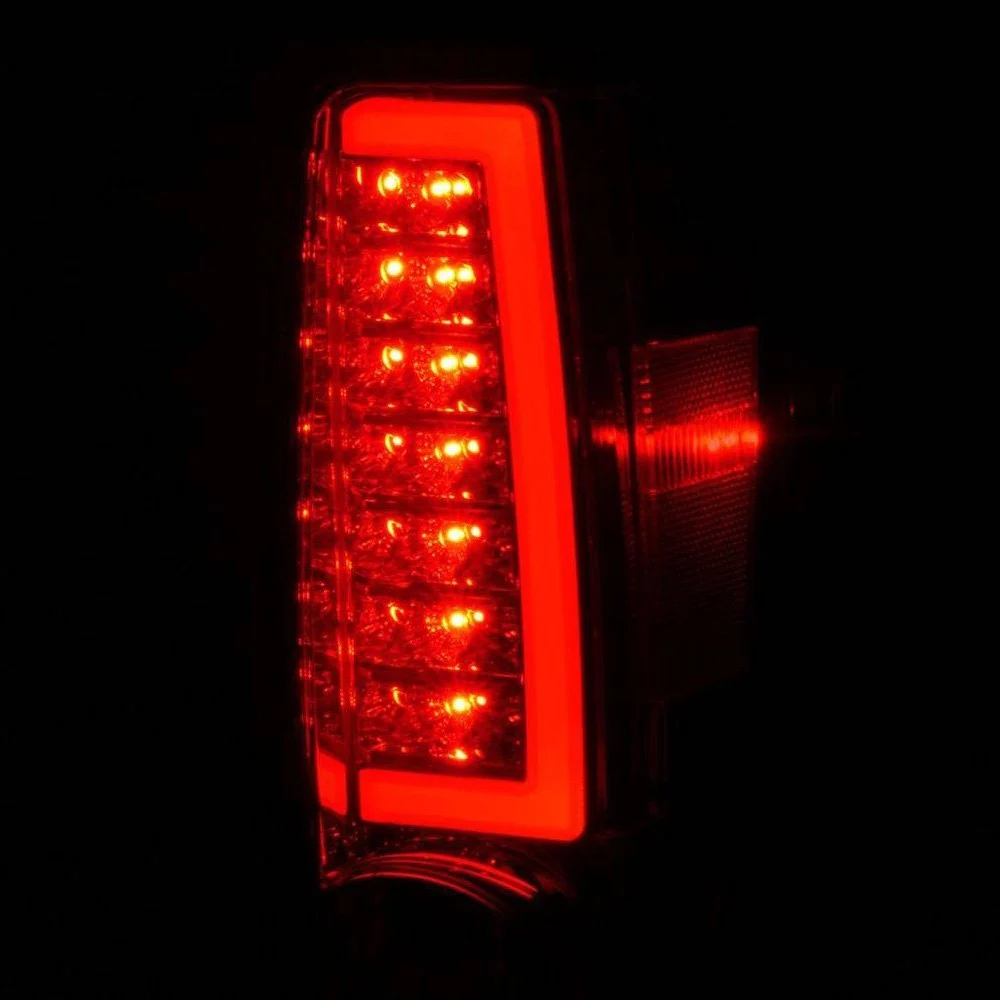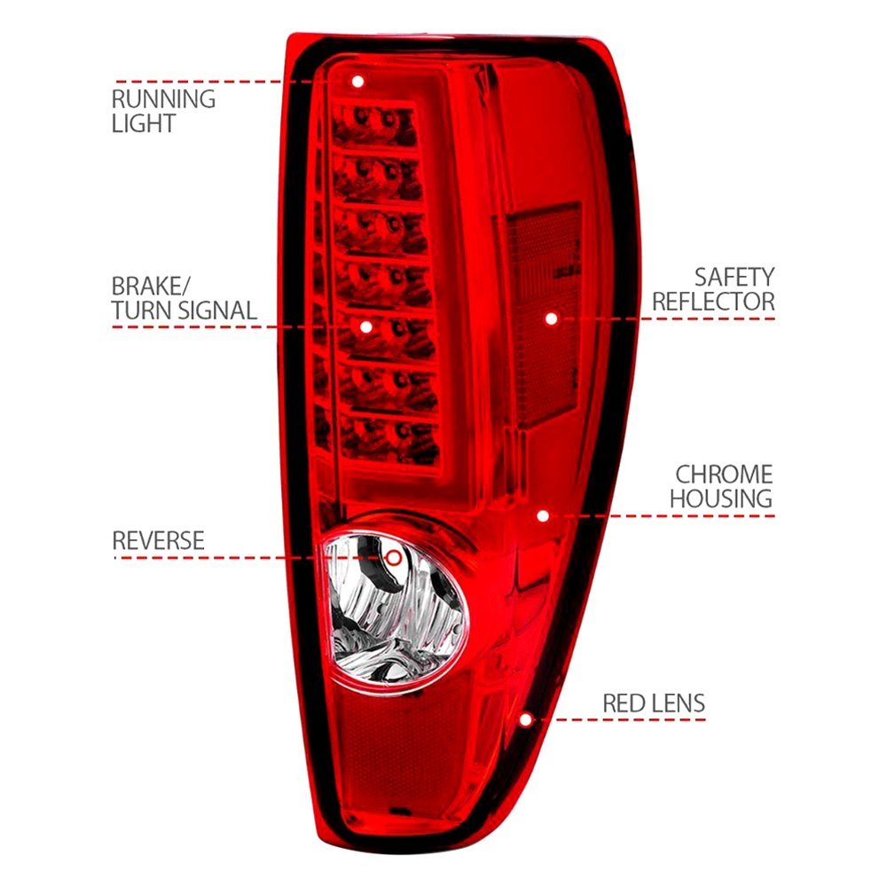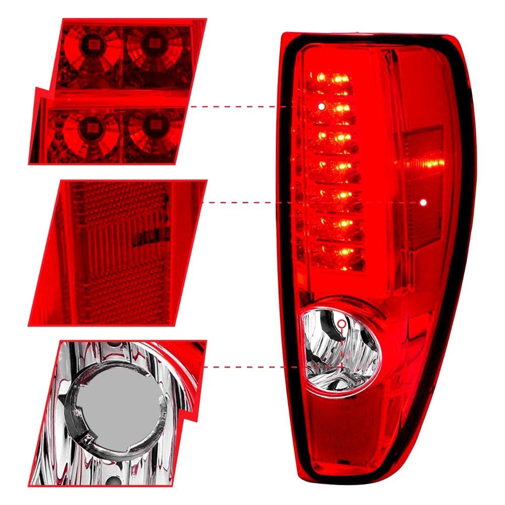 Driver and Passenger Side Chrome/Red Fiber Optic LED Tail Lights by Anzo®. 1 Pair. Chrome housing, red/clear lens. Tired of your dull factory tail lights and feel a strong need to upgrade the rear of your car with something really special? Featuring far more brightness and endurance than stock bulbs, these stunning LED tail lights by Anzo are just the ticket to transform a simple piece of machinery into a classy vehicle.