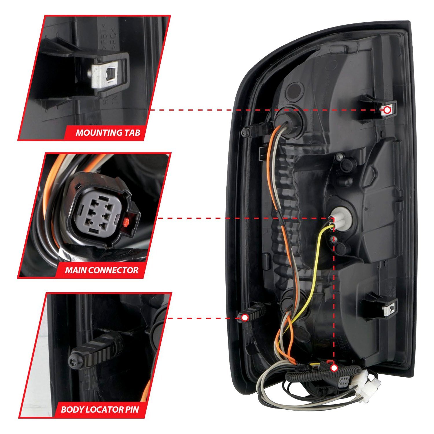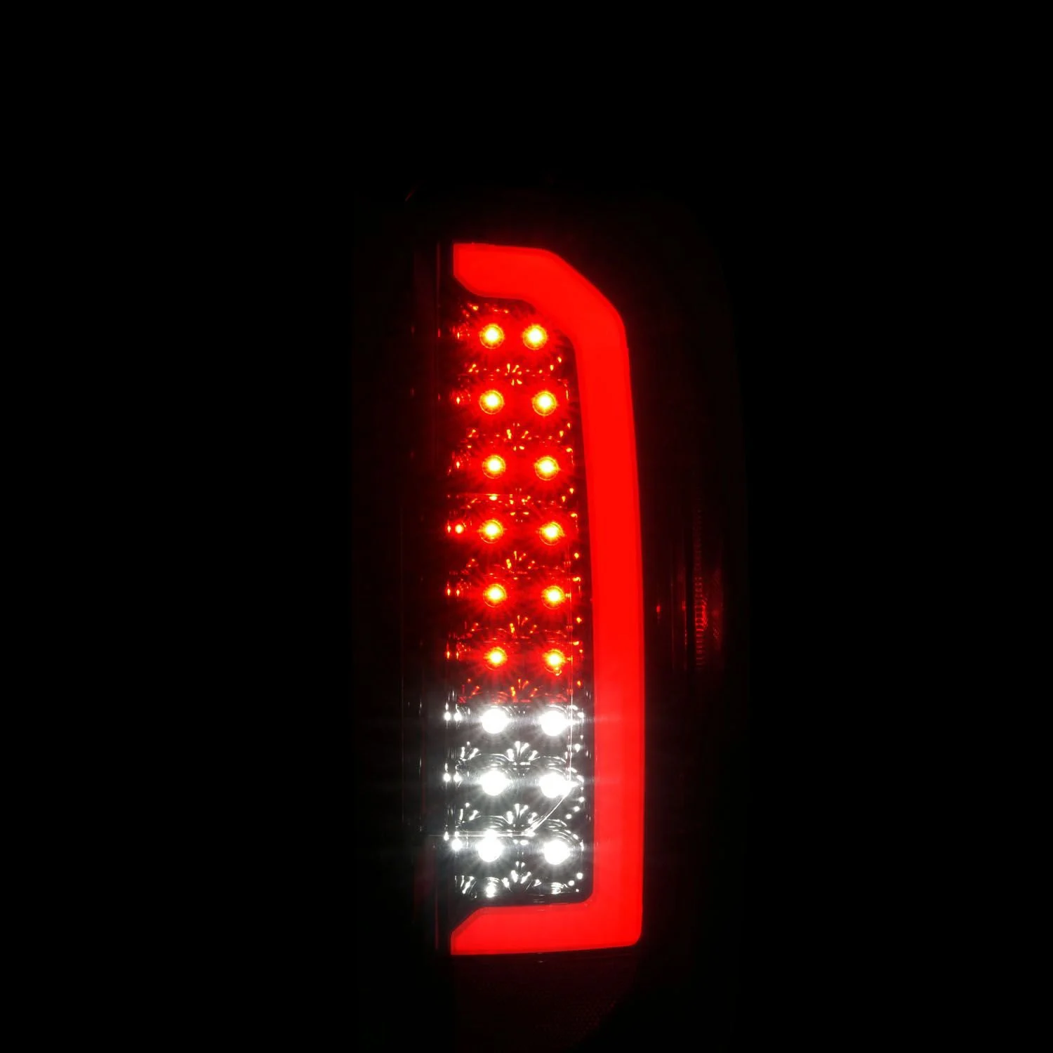 Driver and Passenger Side Black/Smoke Fiber Optic LED Tail Lights by Anzo®. 1 Pair. Black housing, smoke lens. Tired of your dull factory tail lights and feel a strong need to upgrade the rear of your auto with something really special? Featuring far more brightness and endurance than stock bulbs, these stunning tail lights by Anzo are just the ticket to transform a simple piece of machinery into a classy vehicle. These lights combine fiber optic strips which act as running lights and super bright LEDs that provide excellent illumination.