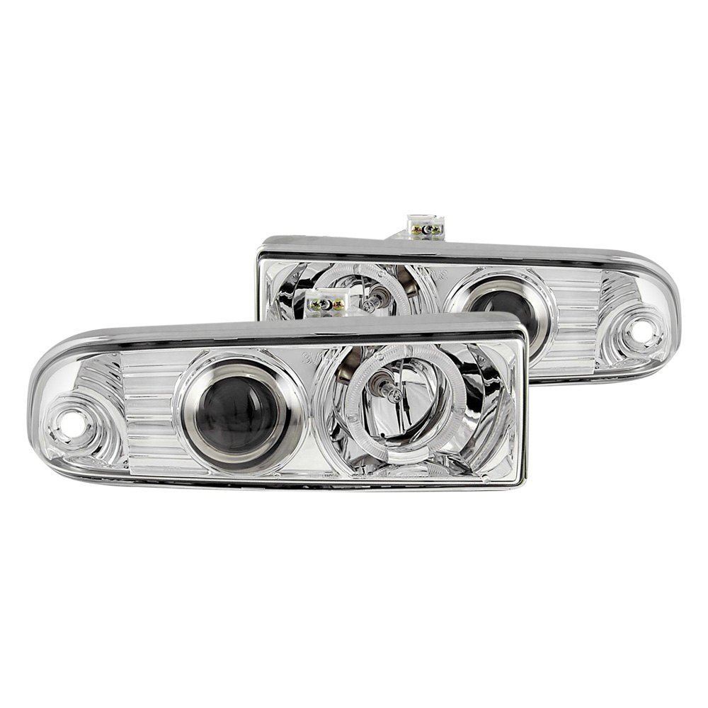 Driver and Passenger Side Chrome LED Halo Projector Headlights (111016) by Anzo®. 1 Pair. Chrome housing, clear lens. Bulb: 9005 (HB3) low beam (included), 9005 (HB3) high beam (included). Do you have a hard time seeing while driving at night? Worried about hitting a deer or other nocturnal road hazards? If you answered yes, then you should get a set of Anzo headlights. These powerful head lamps are brighter than factory headlights and are designed using the latest computer assisted design technology. Anzo uses this CAD technology to not only ensure that you get the best functioning headlights, but that they also look great and fit perfectly.