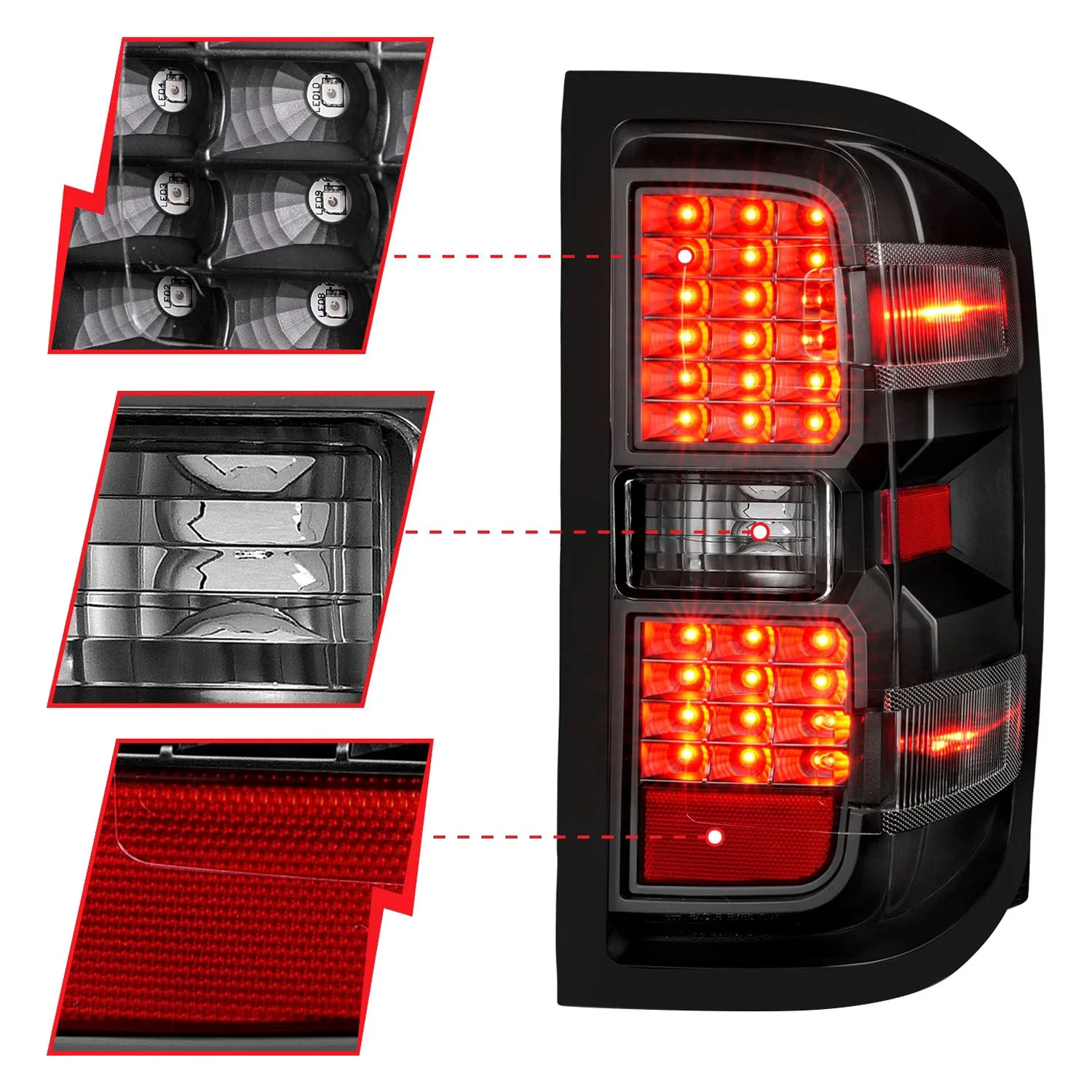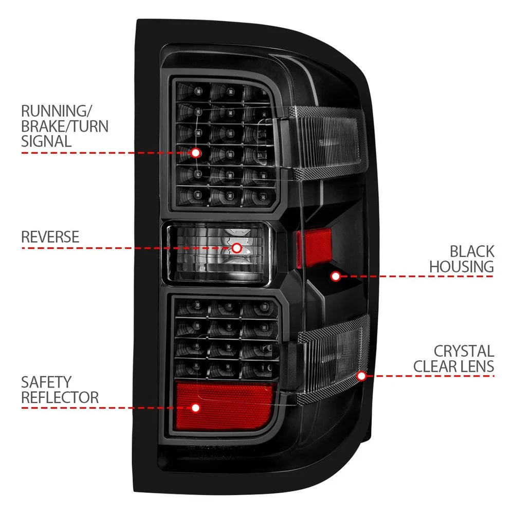 Fits CHEVY SILVERADO 14-18 1500 / 15-19 2500HD/3500HD / GMC SIERRA 15-19 2500HD/3500HD DUALLY LED TAIL LIGHTS BLACK CLEAR (NOT FOR OE FACTORY LED MODELS)
