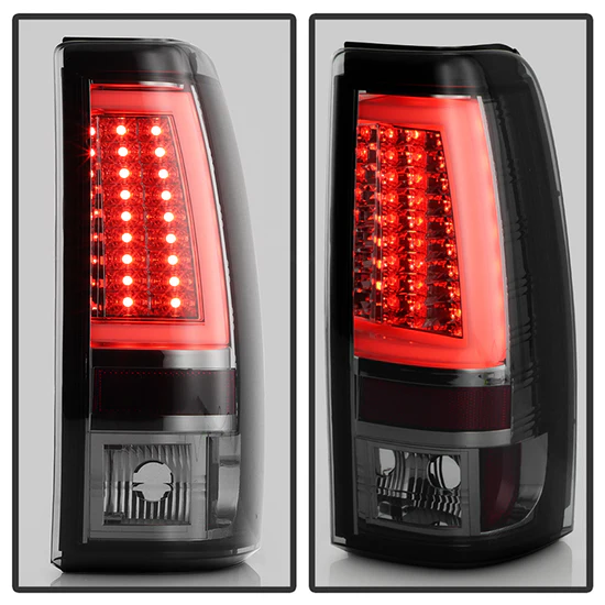 Driver and Passenger Side Chrome/Smoke Fiber Optic LED Tail Lights (ALT-YD-CS99V2-LED-SM) by Spyder®. 1 Pair. Chrome housing, smoke lens. Backed by a 1-year warranty. Replace your boring monochromatic tail lights with these bolt-on fiber optic LED tail lights and give your vehicle an exclusive look like nothing else on the road. The parts combine fiber optic strips that act as running lights and ultra-bright LEDs that ensure the knockout radiance.