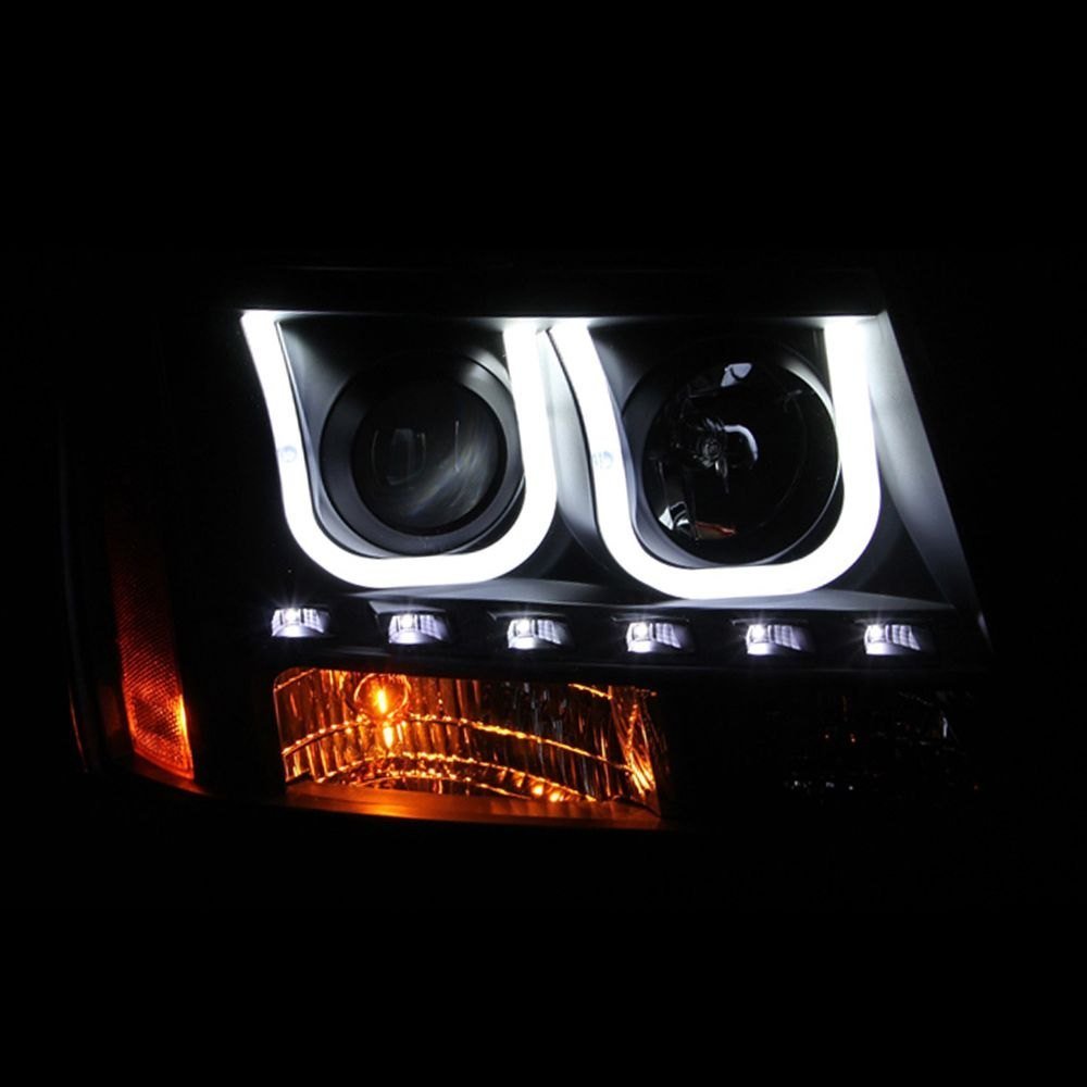 Driver and Passenger Side Black U-Bar™ Projector Headlights with LED DRL by Anzo®. 1 Pair. Black housing, clear lens. Bulb: H7 low beam (included), H1 high beam (included). These powerful lights are brighter than factory and are designed using the latest computer assisted design technology. Anzo uses this CAD technology to not only ensure that you get the best functioning headlights, but that they also look great and fit perfectly.