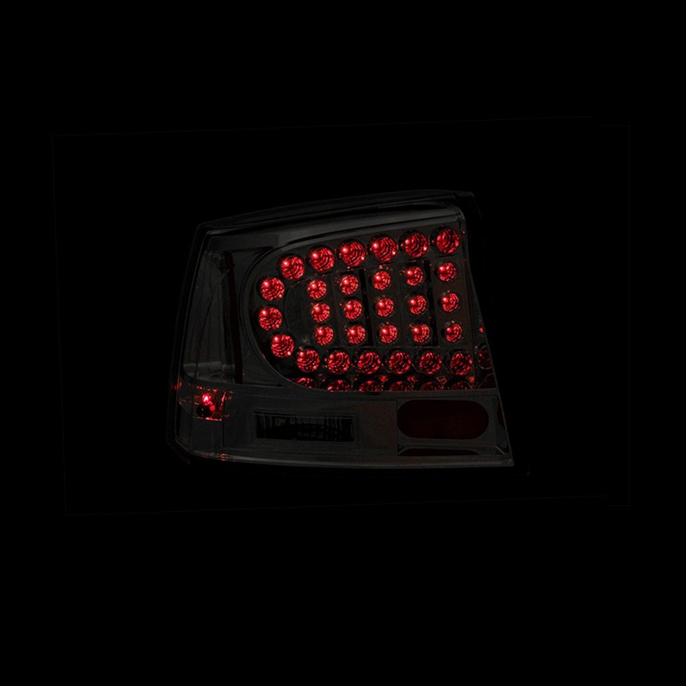 Driver and Passenger Side Black/Smoke LED Tail Lights by Anzo®. 1 Pair. Black housing, smoke lens. Tired of your dull factory tail lights and feel a strong need to upgrade the rear of your car with something really special? Featuring far more brightness and endurance than stock bulbs, these stunning LED tail lights by Anzo are just the ticket to transform a simple piece of machinery into a classy vehicle.