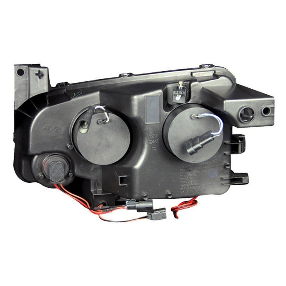 Driver and Passenger Side Black Halo Projector Headlights with Parking LEDs by Anzo®. 1 Pair. Black housing, clear lens. Bulb: H7 low beam (included), H1 high beam (included). Do you have a hard time seeing while driving at night? Worried about hitting a deer or other nocturnal road hazards? If you answered yes, then you should get a set of Anzo headlights. These powerful head lamps are brighter than factory headlights and are designed using the latest computer assisted design technology. Anzo uses this CAD technology to not only ensure that you get the best functioning headlights, but that they also look great and fit perfectly.