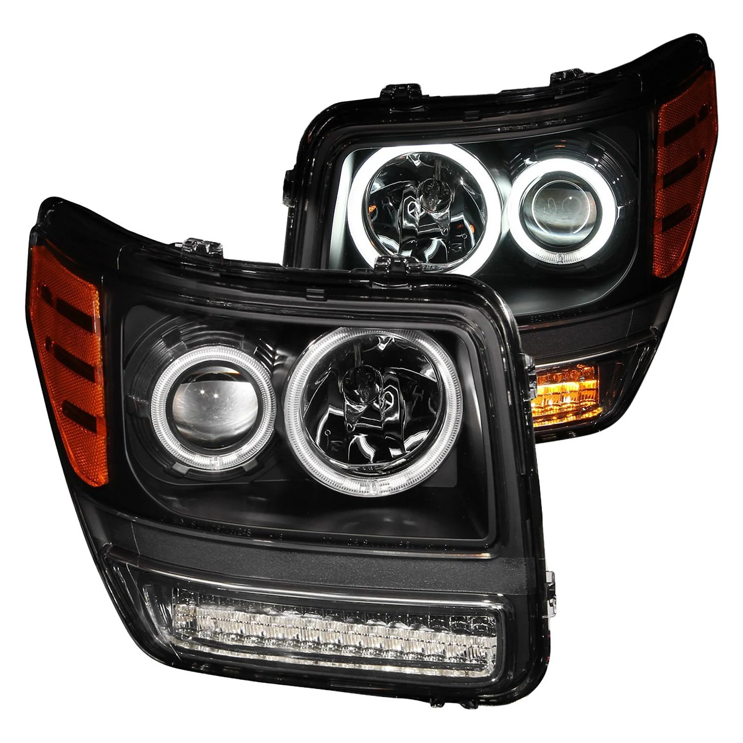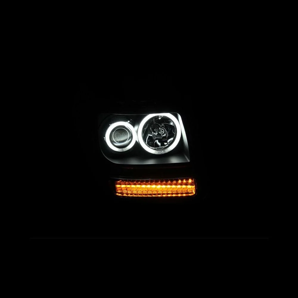 Driver and Passenger Side Black CCFL Halo Projector Headlights with LED Turn Signal/Parking Lights by Anzo®. 1 Pair. Black housing, clear lens. With Amber Reflector. Bulb: H7 low beam (included), H1 high beam (included). These bolt-on headlight assemblies are the perfect solution for those who want to add a stylish touch to the front of their vehicle and at the same time enhance visibility. Made with functionality in mind, the top-grade CCFL Halos provide tremendous illumination which makes your auto more visible to other drivers and enhances your safety while driving.