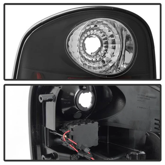 Driver and Passenger Side Black LED Tail Lights (ALT-YD-FF15097FS-LED-BK) by Spyder®. 1 Pair. Black housing, clear lens. Backed by a 1-year warranty. Replace your boring monochromatic tail lights with these bolt-on LED tail lights, and give your vehicle an exclusive look like nothing else on the road. The interesting detail is just visible beyond the lens, and the bright LEDs will upgrade your lighting and increase your safety. Meets all federal regulations for highway use.