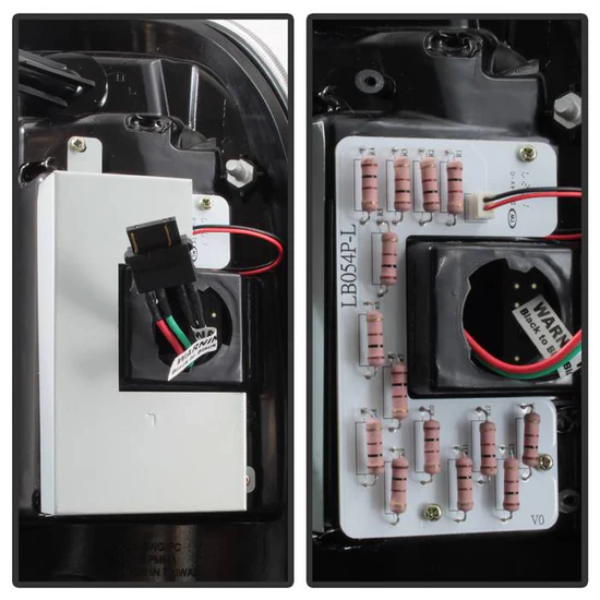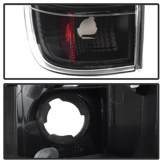 Driver and Passenger Side Black Fiber Optic LED Tail Lights (ALT-YD-FF15097V3-LBLED-BK) by Spyder®. 1 Pair. Black housing, clear lens. Backed by a 1-year warranty. Replace your boring monochromatic tail lights with these bolt-on fiber optic LED tail lights and give your vehicle an exclusive look like nothing else on the road. The parts combine fiber optic strips that act as running lights and ultra-bright LEDs that ensure the knockout radiance. Meets all federal regulations for highway use.