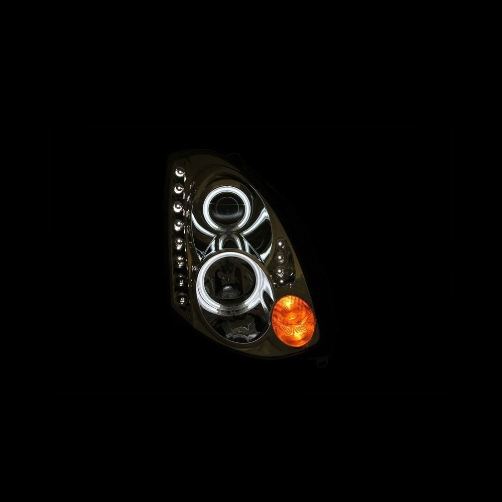 Driver and Passenger Side Chrome CCFL Halo Projector Headlights with Parking LEDs by Anzo®. 1 Pair. Chrome housing, clear lens. Bulb: HID low beam not included (re-use original), H1 high beam not included (re-use original). These bolt-on headlight assemblies are the perfect solution for those who want to add a stylish touch to the front of their vehicle and at the same time enhance visibility. Made with functionality in mind, the top-grade CCFL Halos provide tremendous illumination which makes your auto more visible to other drivers and enhances your safety while driving.