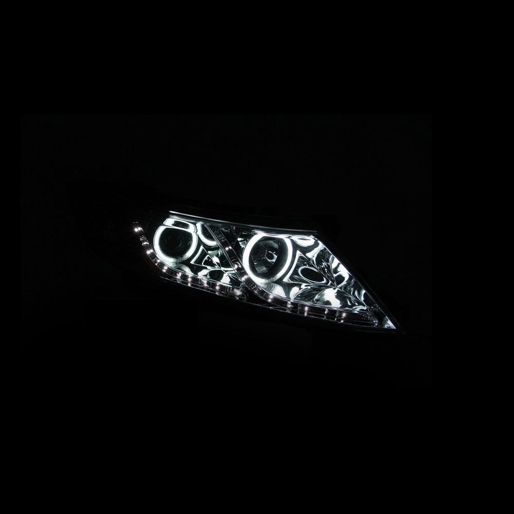 Driver and Passenger Side Chrome CCFL Halo Projector Headlights with Parking LEDs by Anzo®. 1 Pair. Chrome housing, clear lens. Bulb: H7 low beam (included), H1 high beam (included). These bolt-on headlight assemblies are the perfect solution for those who want to add a stylish touch to the front of their vehicle and at the same time enhance visibility. Made with functionality in mind, the top-grade CCFL Halos provide tremendous illumination which makes your auto more visible to other drivers and enhances your safety while driving.