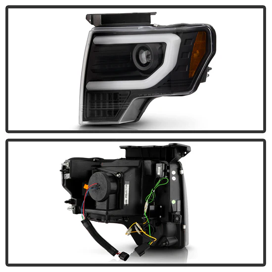 Apex Series Driver and Passenger Side Black Light Tube Projector LED Headlights with Sequential Turn Signal (PRO-YD-FF15009AP-SEQ-BK) by Spyder®. 1 Pair. Black housing, clear lens. Bulb: LED low beam, LED high beam, LED signal. Backed by a 2-year warranty. Provide your vehicle with an exclusive look it deserves with these projector headlights designed for stock lights direct replacement. The perfect blend of projector lights and DRL Bar will not only dramatically improve the appearance of your vehicle but also provide better illumination for greater driving safety and increased visibility to make it more conspicuous. Meets all federal regulations for street use.