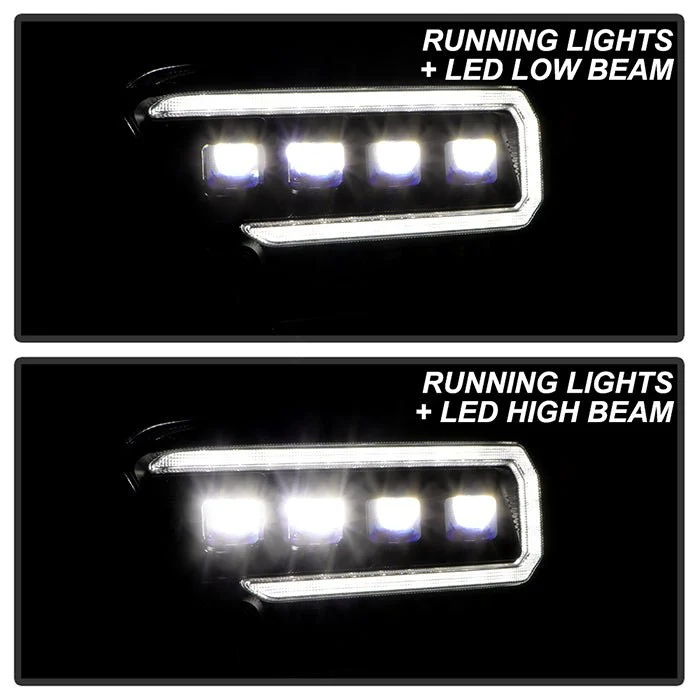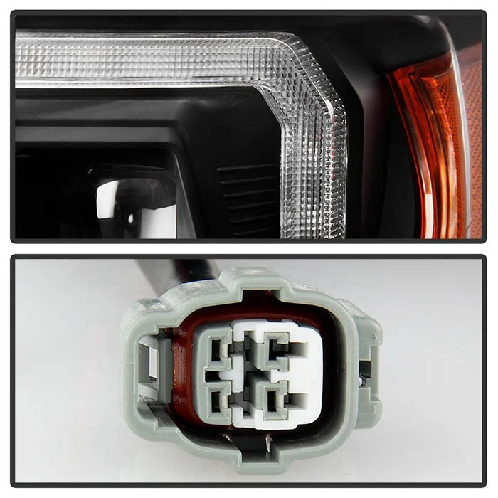 Apex Series Driver and Passenger Side Black Sequential Light Tube Projector LED Headlights by Spyder®. 1 Pair. Black housing, clear lens. Bulb: LED low beam (included), LED high beam (included), LED turn signal (included). Backed by a 2-year warranty. Provide your vehicle with an exclusive look it deserves with these projector headlights designed for stock lights direct replacement. The perfect blend of projector lights and DRL Bar will not only dramatically improve the appearance of your vehicle but also provide better illumination for greater driving safety and increased visibility to make it more conspicuous. Meets all federal regulations for street use.
