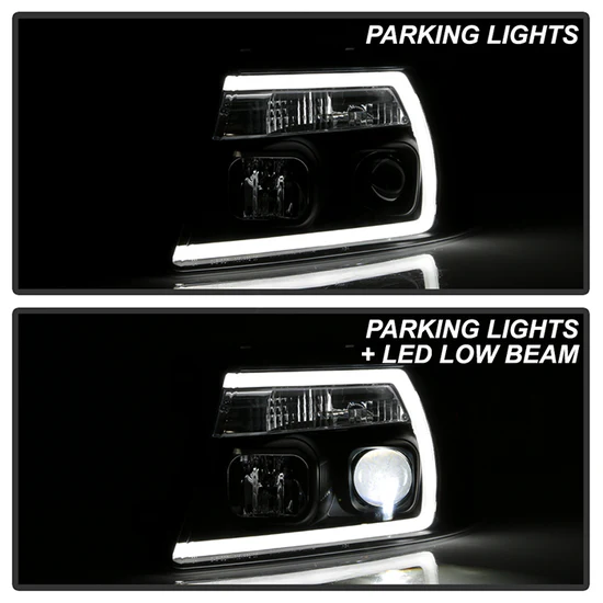 Fits ( Spyder Platinum ) Ford F-150 2004-2008 High-Power LED Module ( Low Beam ) Equipped Headlights - White Light Bar Parking Light - Low Beam: LED (Included) - High Beam: H1 (Included) - Turn Signal: 3157 (Not Included) - Black