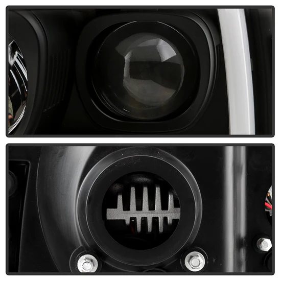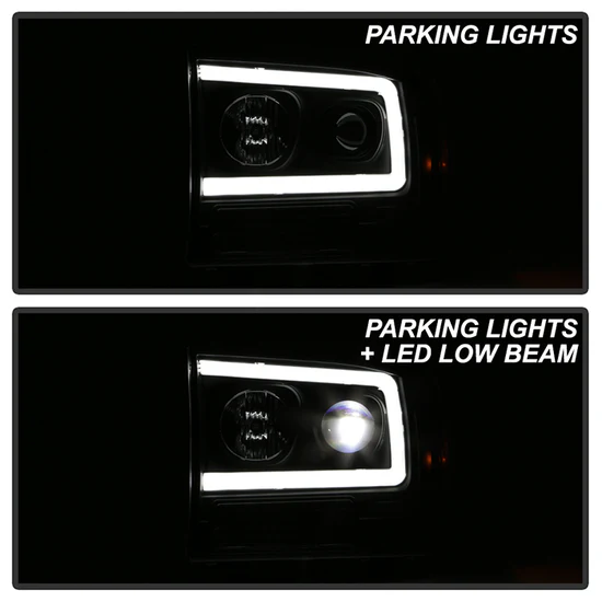 Platinum Series Driver and Passenger Side Black Light Tube Projector LED Headlights by Spyder®. 1 Pair. Black housing, clear lens. Bulb: LED low beam (included), H1 high beam (included), 3157 turn signal (not included). Backed by a 2-year warranty. Provide your vehicle with an exclusive look it deserves with these headlights designed for stock lights direct replacement. The perfect blend of lights and DRL Bar will not only dramatically improve the appearance of your vehicle but also provide better illumination for greater driving safety and increased visibility to make it more conspicuous. Meets all federal regulations for street use.