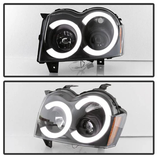 Signature Series Driver and Passenger Side Black LED DRL Bar Halo Projector Headlights by Spyder®. 1 Pair. Black housing, clear lens. Bulb: 9006 (HB4) low beam (not included), H1 high beam (not included), 3157NA signal (not included). Backed by a 1-year warranty. Provide your vehicle with an exclusive look it deserves with these projector headlights designed for stock lights direct replacement. The perfect blend of projector lights and DRL Bar halo rings will not only dramatically improve the appearance of your vehicle but also provide better illumination for greater driving safety and increased visibility to make it more conspicuous. Meets all federal regulations for street use.