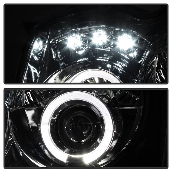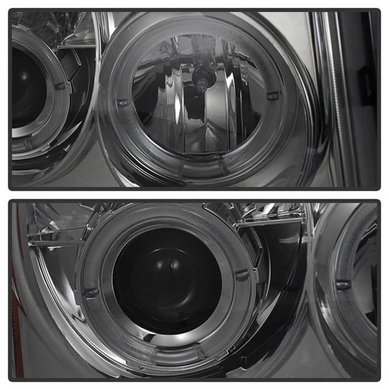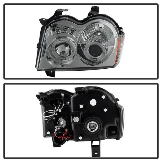 Signature Series Driver and Passenger Side Chrome/Smoke Halo Projector Headlights with Parking LEDs (PRO-YD-JGC05-HL-SMC) by Spyder®. 1 Pair. Chrome housing, smoke lens. Bulb: 9006 (HB4) low beam (not included), H1 high beam (included). Backed by a 1-year warranty. Improve your vision and your vehicle’s appearance with these bolt-on headlight assemblies. The projector beam headlights will produce a sharper, more focused beam of light for safer driving at night, the bright Halos and LED lights will make your vehicle more visible to other drivers, and the Halos, LEDs and custom headlight housing will give your ride an exclusive, unique look.
