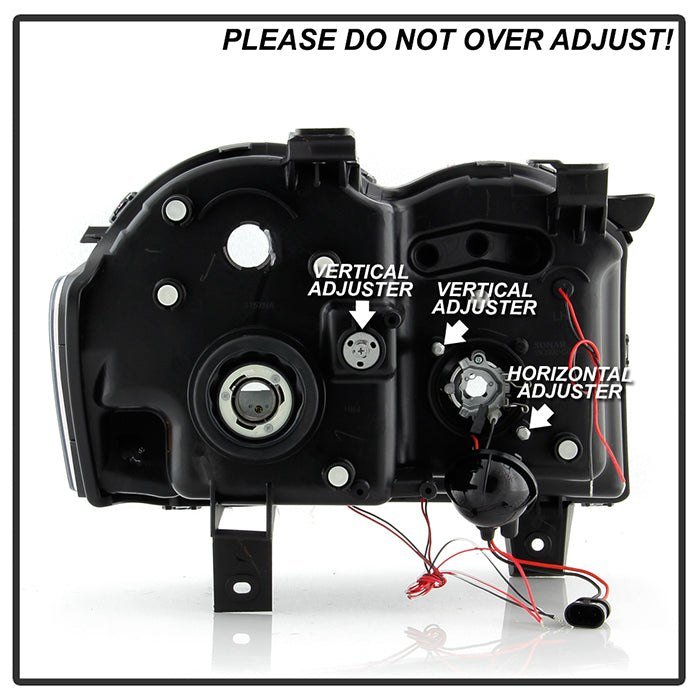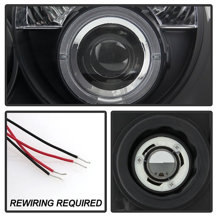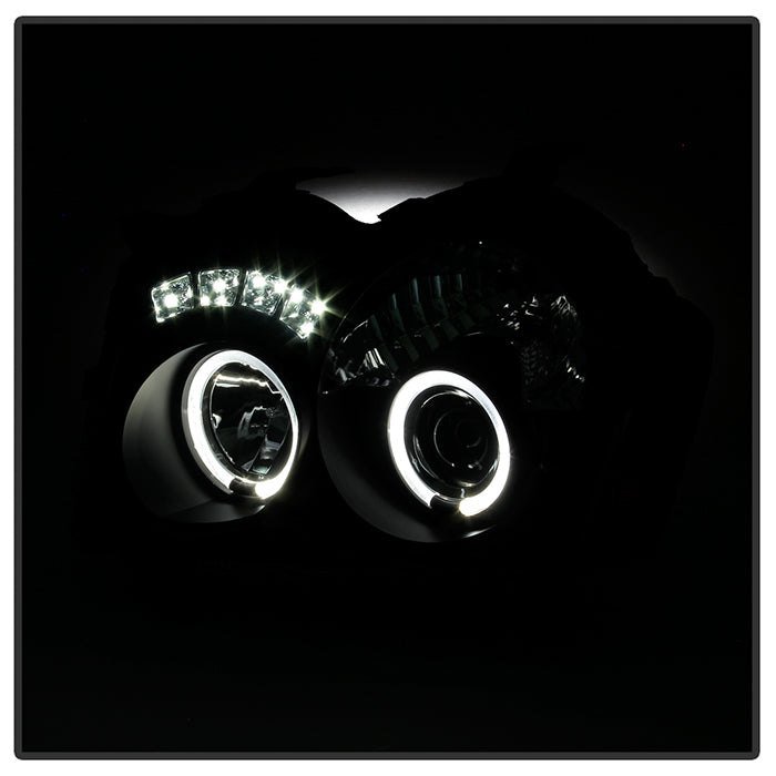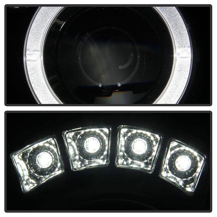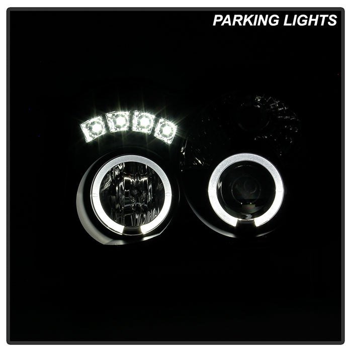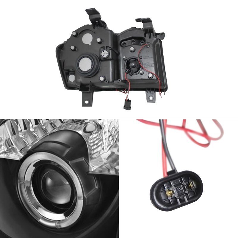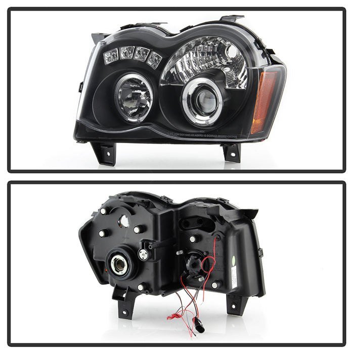 Signature Series Driver and Passenger Side Black Halo Projector Headlights with Parking LEDs (PRO-YD-JGC08-HL-BK) by Spyder®. 1 Pair. Black housing, clear lens. Bulb: 9006 (HB4) low beam (not included), H1 high beam (included). Backed by a 1-year warranty. Improve your vision and your vehicle’s appearance with these bolt-on headlight assemblies. The projector beam headlights will produce a sharper, more focused beam of light for safer driving at night, the bright Halos and LED lights will make your vehicle more visible to other drivers, and the Halos, LEDs and custom headlight housing will give your ride an exclusive, unique look. Meets all federal regulations for street use.