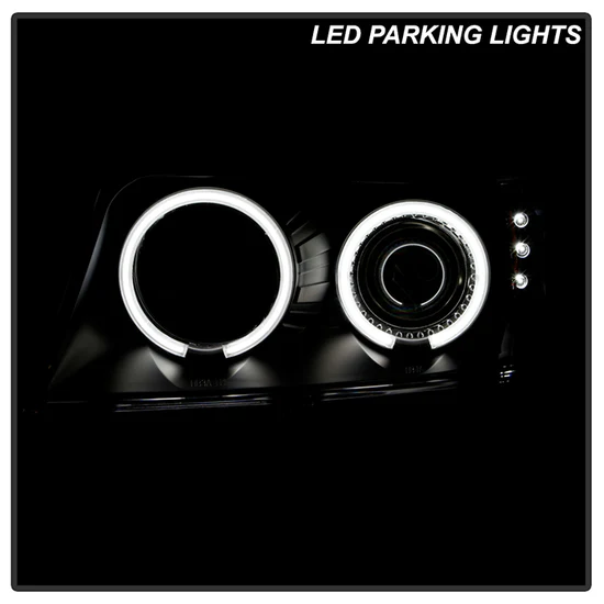 Fits ( Spyder Signature ) Jeep Grand Cherokee 99-04 Projector Headlights - CCFL Halo - LED ( Replaceable LEDs ) - Black - High 9005 (Not Included) - Low 9006 (Not Included)