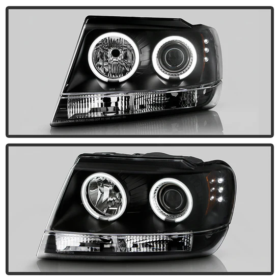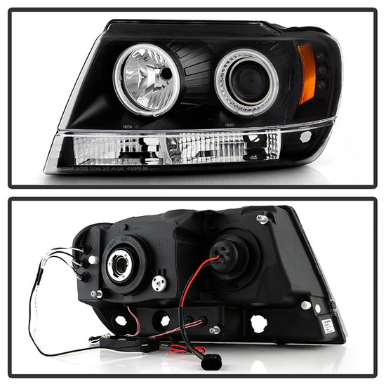 Fits ( Spyder Signature ) Jeep Grand Cherokee 99-04 Projector Headlights – CCFL Halo – LED ( Replaceable LEDs ) – Black – High 9005 (Not Included) – Low 9006 (Not Included)
