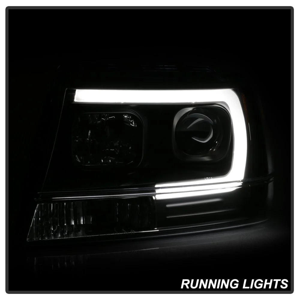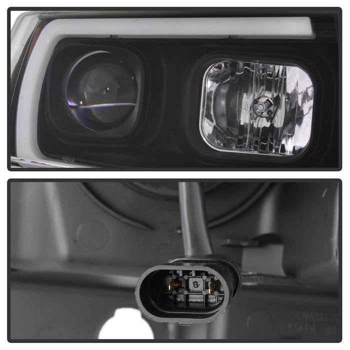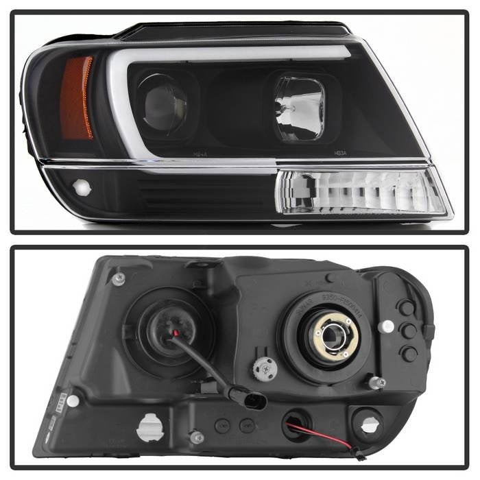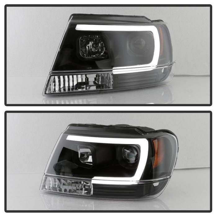 Signature Series Driver and Passenger Side Black LED DRL Bar Projector Headlights (PRO-YD-JGC99V2-DRL-BK) by Spyder®. 1 Pair. Black housing, clear lens. Backed by a 1-year warranty. Provide your vehicle with an exclusive look it deserves with these projector headlights designed for stock lights direct replacement. The perfect blend of projector lights and DRL Bar will not only dramatically improve the appearance of your vehicle but also provide better illumination for greater driving safety and increased visibility to make it more conspicuous. Meets all federal regulations for street use.