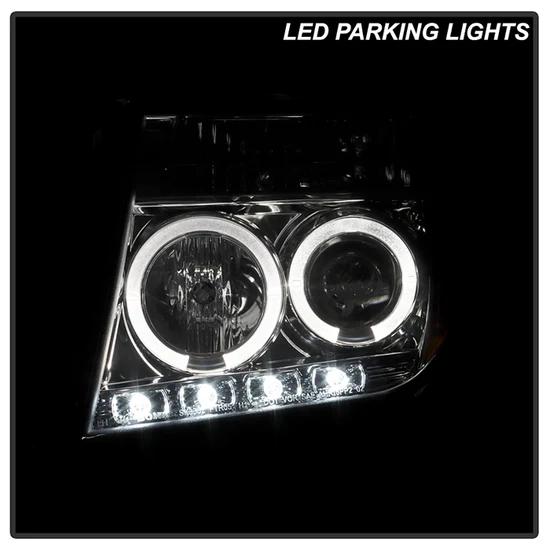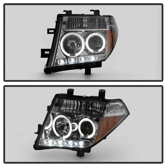 Signature Series Driver and Passenger Side Chrome/Smoke Halo Projector Headlights with Parking LEDs by Spyder®. 1 Pair. Chrome housing, smoke lens. Bulb: H1 low beam (included), H1 high beam (included). Backed by a 1-year warranty. Improve your vision and your vehicle’s appearance with these bolt-on headlight assemblies. The projector beam headlights will produce a sharper, more focused beam of light for safer driving at night, the bright Halos and LED lights will make your vehicle more visible to other drivers, and the Halos, LEDs and custom headlight housing will give your ride an exclusive, unique look.