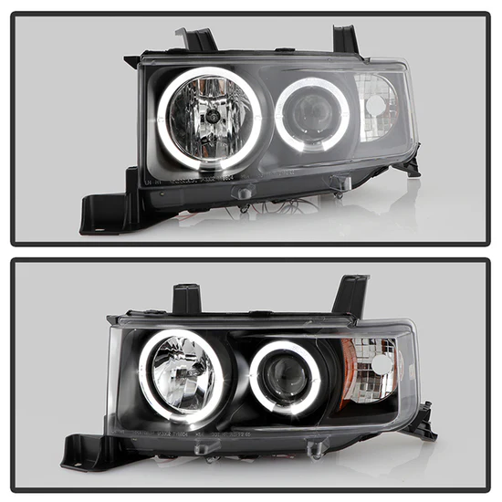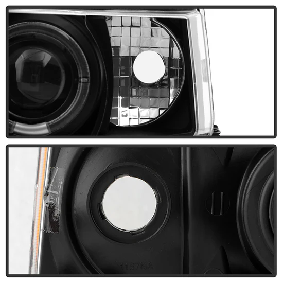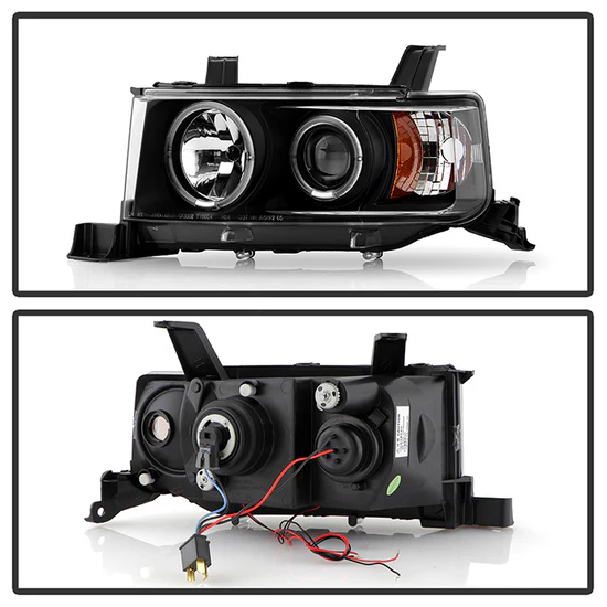 Signature Series Driver and Passenger Side Black LED Halo Projector Headlights (PRO-YD-TSXB03-HL-BK) by Spyder®. 1 Pair. Black housing, clear lens. Bulb: 9006 (HB4) low beam (included), H1 high beam (included), 1157A signal (not included). Backed by a 1-year warranty. Improve your vision and your vehicle’s appearance with these bolt-on headlight assemblies. The projector beam headlights will produce a sharper, more focused beam of light for safer driving at night, the bright Halos and LED lights will make your vehicle more visible to other drivers, and the Halos, LEDs and custom headlight housing will give your ride an exclusive, unique look. Meets all federal regulations for street use.