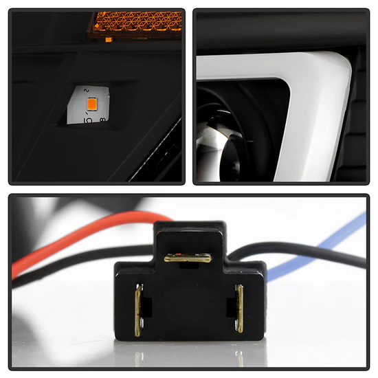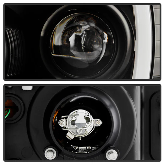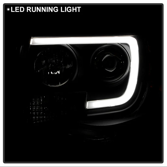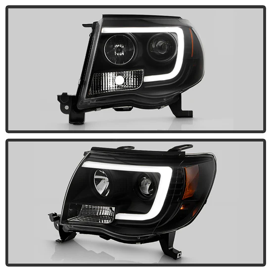 Signature Series Driver and Passenger Side Black LED Light Tube Projector Headlights (PRO-YD-TT05V2-LB-BK) by Spyder®. 1 Pair. Black housing, clear lens. Backed by a 1-year warranty. Provide your vehicle with an exclusive look it deserves with these projector headlights designed for stock lights direct replacement. The perfect blend of projector lights and DRL Bar will not only dramatically improve the appearance of your vehicle but also provide better illumination for greater driving safety and increased visibility to make it more conspicuous. Meets all federal regulations for street use.