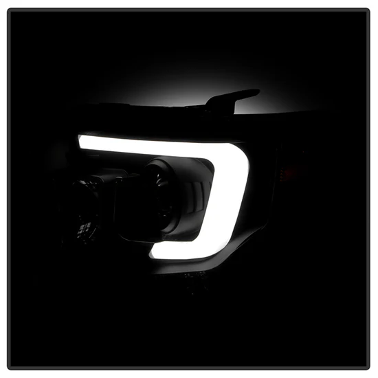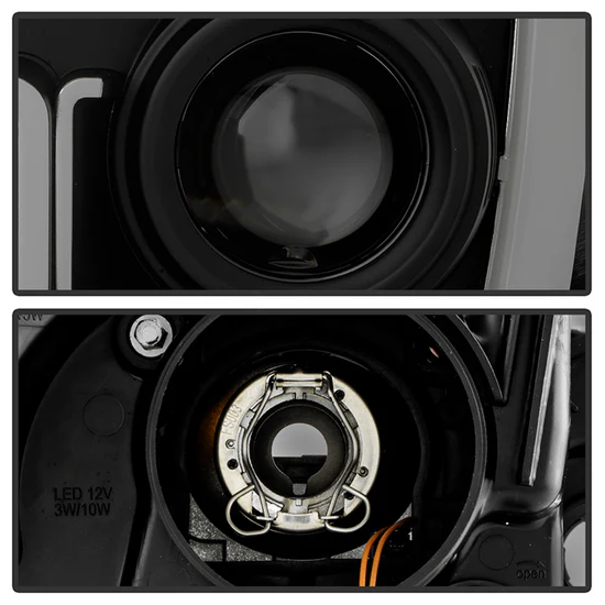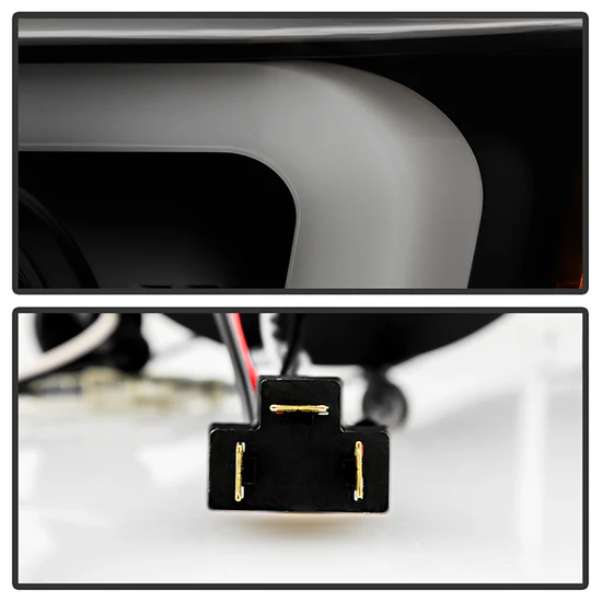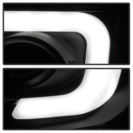 Signature Series Driver and Passenger Side Black/Smoke LED Light Tube Projector Headlights by Spyder®. 1 Pair. Black housing, smoke lens. Backed by a 1-year warranty. Provide your vehicle with an exclusive look it deserves with these projector headlights designed for stock lights direct replacement. The perfect blend of projector lights and DRL Bar will not only dramatically improve the appearance of your vehicle but also provide better illumination for greater driving safety and increased visibility to make it more conspicuous.